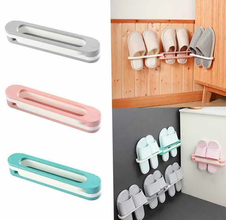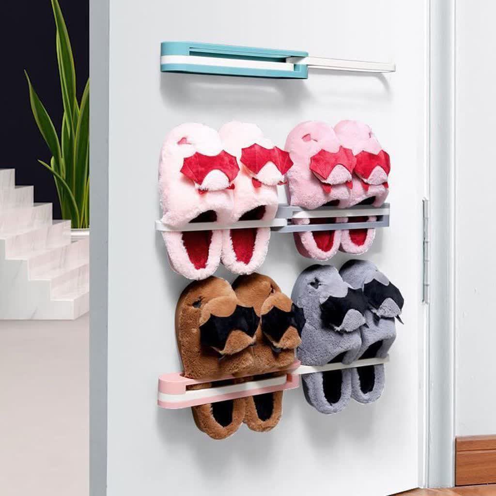 قابلیت باز و بسته شدن داره و میتونی بسته به نیازت یک، دو یا حتی سه جفت دمپایی رو همزمان روش قرار بدی. نصبش خیلی راحته و با چسب دوطرفه قوی، بدون سوراخکاری روی دیوار میچسبه.