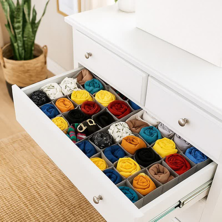اگه کشوهات همیشه بههمریخته و پیدا کردن وسایل کوچیک وقتت رو میگیره، این نظمدهنده دقیقاً همون چیزیه که لازم داری. با ۱۶ خانه مجزا، کمک میکنه لباس زیر، جوراب، دستمال یا لوازم کوچیک رو مرتب و دستهبندیشده نگه داری.