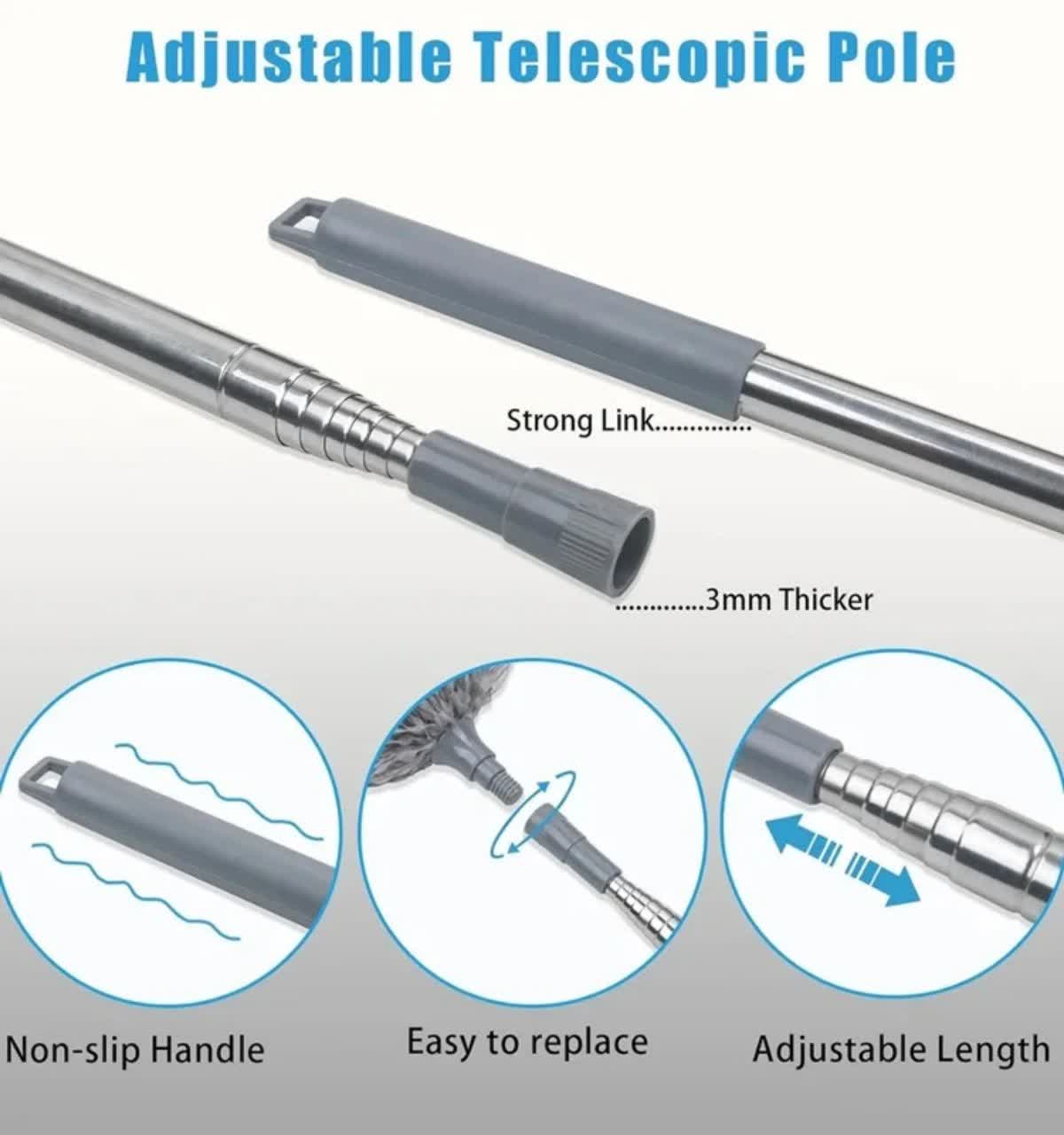 وقتی نوبت تمیزکاریهای اساسی میرسه، مخصوصاً قبل عید، دسترسی به جاهای بلند همیشه یه چالشه! این گردگیر چندحالته با طول ۲.۵ متر کمک میکنه بدون نیاز به نردبون، راحت به سقف، گوشههای دیوار، بالای کابینت و حتی لوستر دسترسی داشته باشی.