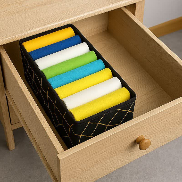 جنس پارچهای مقاوم و دیوارههای مستحکم باعث میشه فرم خودش رو حفظ کنه و داخل کشو کاملاً ثابت بمونه. سایز مدیوم با ابعاد 14×16×38 سانتیمتر برای نظمدهی لباس زیر، جوراب، اکسسوری، لوازم آرایشی یا وسایل ریز کاملاً مناسبه.