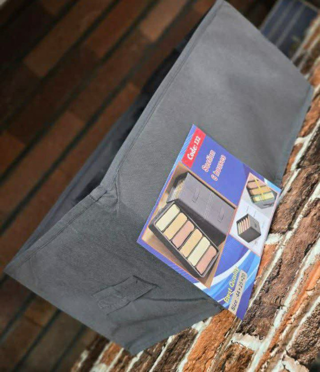 با مقسم لباس ۶ خانه پارچهای خوش، کمد و کشو همیشه مرتب و منظم خواهد بود. این محصول کوچک اما کاربردی، همراهی مطمئن برای خانههای شیک و منظم است.